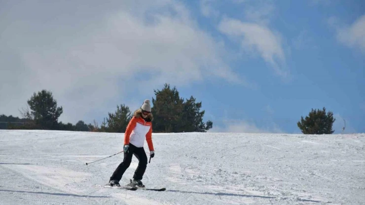 Kayak sporcularının gösterisi eşliğinde yapılan açılışın ardından vatandaşlar, kristal kar üzerinde kayak yapmanın keyfini yaşadı.