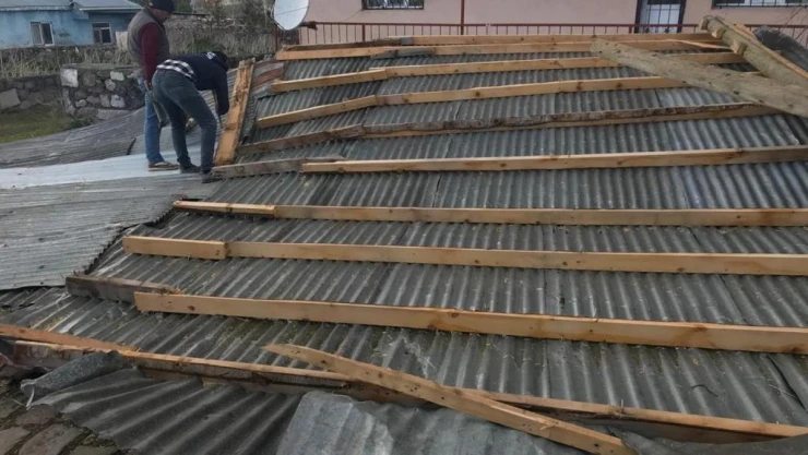 Ardahan'da kuvvetli rüzgâr çatıları uçurdu