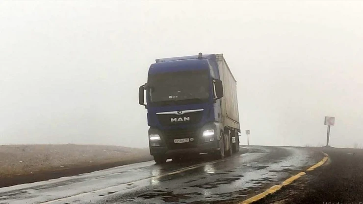 Ardahan-Çıldır Karayolu'nda sabah saatlerinde etkili olan sis, tipi ve buzlanma ulaşımı olumsuz etkiliyor.