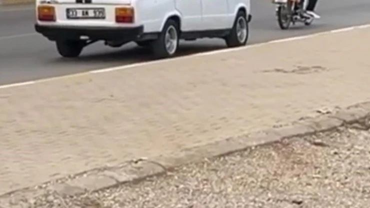 Antalya'da arızalandıktan sonra yolda kalan otomobili, motosiklete bağladıkları halat yardımıyla çektiler. O anlar çevrede bulunan bir vatandaş tarafından cep telefonu ile kaydedildi.