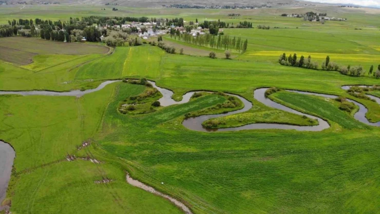 Öte yandan, Arpaçay ovasında yeşille birleşen Arpaçay menderesleri, kilometrelerce uzunlukta kıvrımlar oluşturarak akıyor. Menderesin oluşturduğu güzel manzara havadan dron ile görüntülendi. Menderesler yeşil renklerle oluşan kartpostallık görüntüleri görenleri kendine hayran bırakıyor.