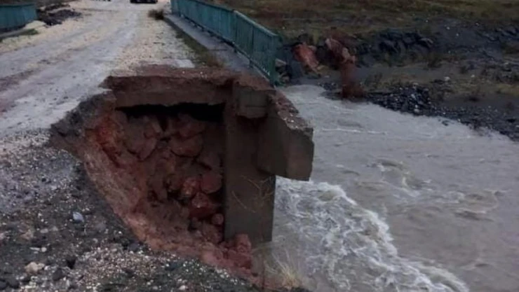 Malatya'nın Yazıhan ilçesinde etkili olan sağanak yağış sonrası dereler taşırken, Koşar mahallesinde bulunan köprü de ise göçük meydana geldi.