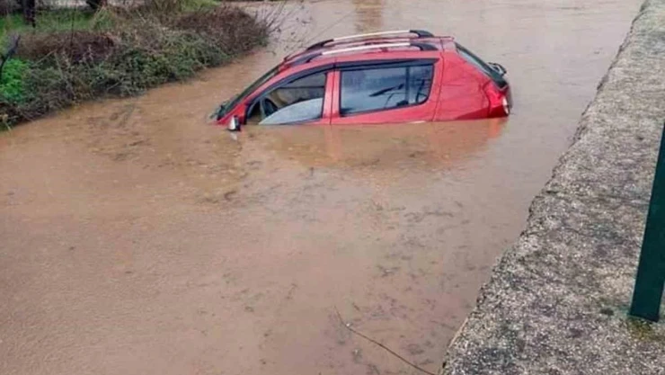 Aşırı yağış sonrası ovayı su bastı, araç su altında kaldı