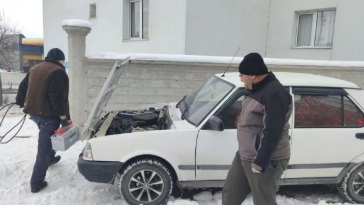Oto elektrik ustası çağıran vatandaşlar arabalarını yedek akü ile şarj ederek çalıştırdı.