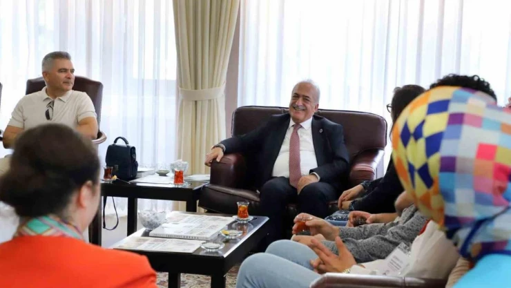 Öğrenci Dekanlığı Dekanı Prof. Dr. Yaşar Totik ve ATAKARMER Müdürü Prof. Dr. Neslihan Kulözü’nün refakat ettiği öğrenciler, Rektör Çomaklı ile bir araya geldi. Atatürk Üniversitesinin böylesine önemli bir organizasyona ev sahipliği yapması ve toplantıya katılan öğrencilerin ziyareti dolayısıyla duyduğu memnuniyeti dile getiren Rektör Çomaklı, konuklarına üniversite hakkında bilgi verdi.