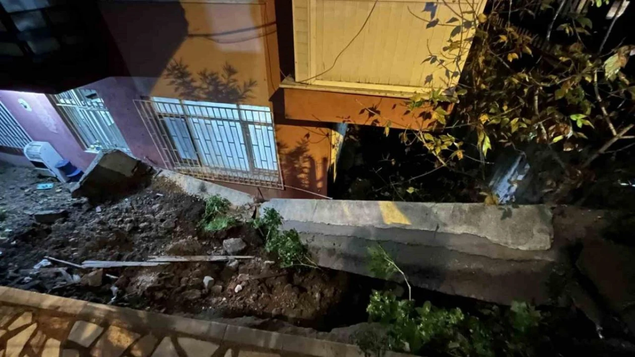 Avcılar'da yoğun sağanak sebebiyle iki bina arasındaki istinat duvarı çöktü.
