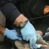 Şanlıurfa’da işçinin ayağına saplanan demir şiş, doktor gözetiminde itfaiye ekiplerince çıkarıldı.