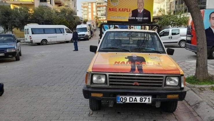 Her seçimde aday olan ve bir zamanlar ‘Aydın’ın üzerine örtmek’ gibi ilginç projeleri ile gündeme gelen Nail Kaplı, siyasetten hiçbir beklentisinin olmadığını tek amacının şehre hizmet etmek olduğunu söyledi. Kamyoneti ile sokak sokak köy köy dolaşıp kendi propagandasını yapmaya çalışan Nail Kaplı, 8. Cumhurbaşkanı Turgut Özal ile yan yana fotoğrafı ile giydirilmiş seçim kamyoneti ile çalışmalarını sürdürürken çarşı pazarda da broşürlerini bizzat kendisi dağıtıyor.