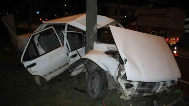Aydınlatma direğine çarpan otomobil kağıt gibi katlandı: 3 yaralı