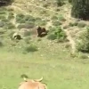 Erzurum’un Oltu ilçesinde ayının sürüye saldırısını kangal köpekleri önledi. Saldırı anı cep telefonu kamerası ile anbean görüntülendi.