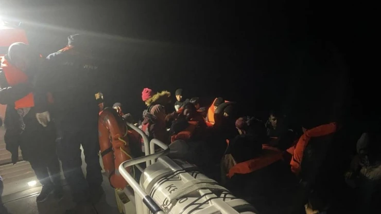 Çanakkale'nin Ayvacık ilçesi açıklarında Sahil Güvenlik Komutanlığı ekipleri tarafından lastik bot içinde 43 kaçak göçmen yakalandı.