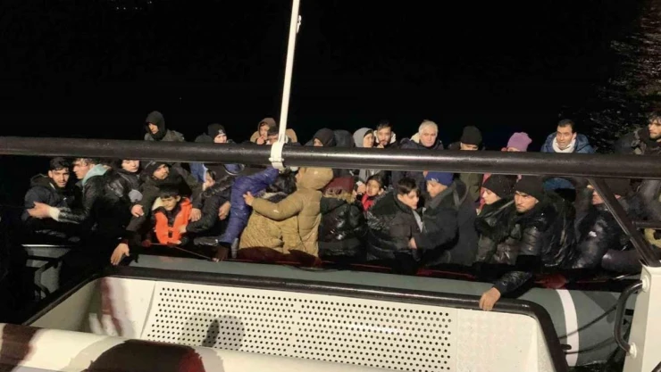 Sahil Güvenlik botu ‘TCSG-905’ tarafından hareket halinde durdurulan lastik bot içinde 46 kaçak göçmen yakalandı.