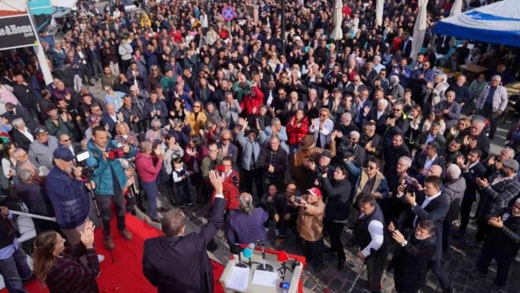 İlçenin tarihi at arabacılar meydanında bulunan CHP Ayvalık İlçe Başkanlık binasına kalabalık bir halk topluluğuyla gelen Başkan Ergin, miting havasında gerçekleşen toplantıda Ayvalıklılara seslendi.