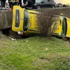Babaeski'de yoldan çıkan ticari taksi devrildi: 1 yaralı