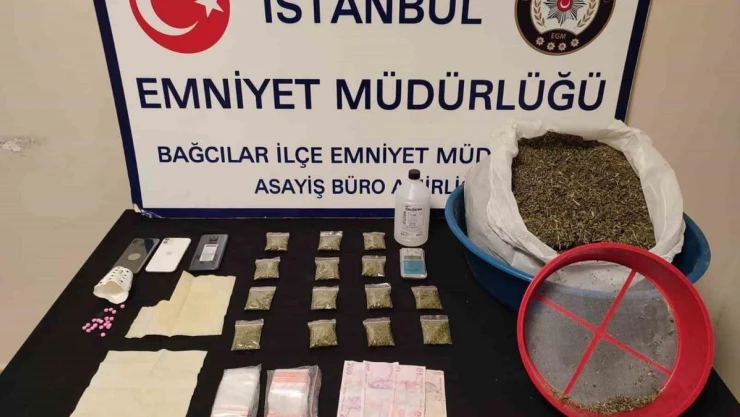 Bağcılar'da polis ekiplerince, uyuşturucu madde ticareti yaptığı tespit edilen 1 şüpheli yakalanarak gözaltına alınırken, adreste yapılan aramalarda çok sayıda uyuşturucu madde ele geçirildi.