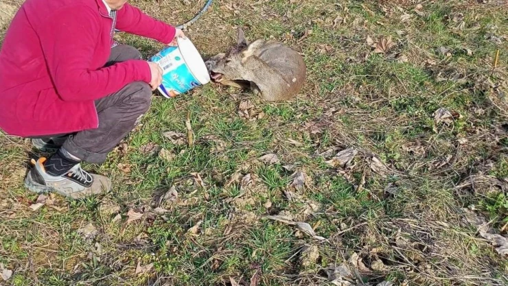 Bahçede bitkin halde bulunan karaca doğaya salındı