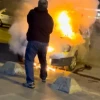Öte yandan vatandaşların alev alev yanan otomobile yangın tüpüyle müdahale etmesi cep telefonu kameralarına yansıdı.