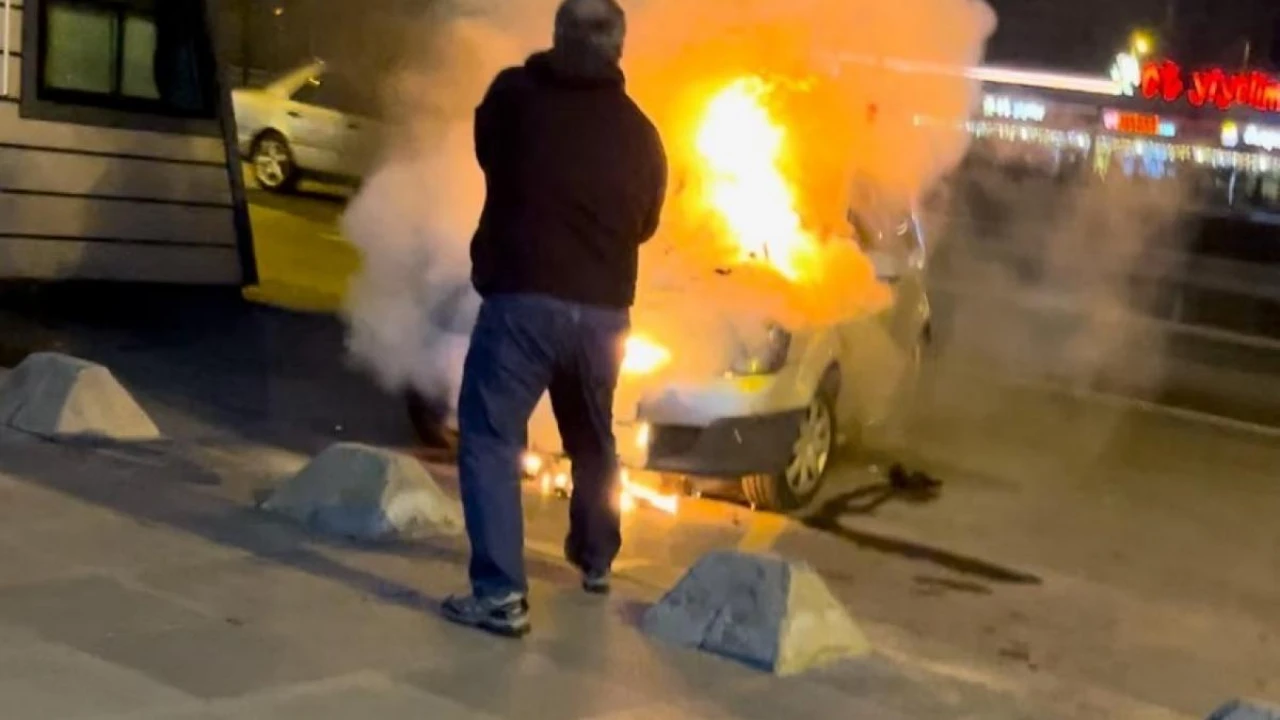 Bahçelievler'de park halindeki otomobil alev alev yandı