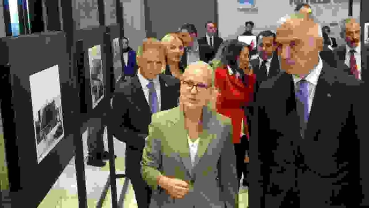 Açılış töreninde konuşan Bakan Ersoy, “Cumhuriyetimizin 100’üncü yılı çerçevesinde düzenlenen bu güzel serginin açılışında sizlerle birlikte olmaktan büyük bir memnuniyet duyuyorum. Cumhurbaşkanımız Sayın Recep Tayyip Erdoğan’ın liderliğinde de bizler bu kıymetli emaneti daha ileriye ulaştırmak için gece gündüz demeden çalışıyoruz. Türkiye’mizin 100’üncü yılında Kültür ve Turizm Bakanı olarak görev yapmak benim için büyük bir onur. Bu onuru hakkıyla yaşamak için 5 yılı aşkın süredir görevimizin başındayız. Ben ve ekibim ülkemizin geleceğine imza atacak projeleri bir bir hayata geçirdik. Atatürk Kültür Merkezi, CSO’nun yeni binası, Rami Kütüphanesi, Kız Kulesi’nin restorasyonu, Atlas Sineması, Sümela Manastırı’nın restorasyonunu gerçekleştirdik. Yurt dışına çıkarılan eserlerimizin yeniden ait oldukları topraklara getirilmesini sağladık. Kültür ve sanatı ülkemizin dört bir yanına yaydık. Türkiye Kültür Yolu Festivalleri’ni bu sene 11 ilde gerçekleştirdik. Kültür, sanat ve turizmin birbirini desteklediği bir ekosistemi hayata geçirdik. Ülkemizin tanıtımını dünya çapında yaptık. Türkiye’mizi küresel bir marka haline getirdik. Deniz, kum ve güneş üçgenine sıkıştıran Türk turizmini çeşitlendirdik. Türkiye’mizi arkeoloji alanında dünyanın sayılı ülkelerinden biri haline getirdik. İstanbul’u kruvaziyer turizminde lider hale konuma getirdik. Birçok ilimizi de bu rotaya ekleyeceğiz. Dünyada turizmde en yaygın ve en iyi standartları belirleyen Küresel Sürdürülebilir Turizm Konseyi (GSTC) ile hükümet nezdinde anlaşma imzaladık. Ulusal Sürdürülebilir Turizm Programı’nı hazırladık. UNESCO Dünya Miras Listesi’ndeki sayımızı katladık. Tarihimize sahip çıkmak için Çanakkale Alan Başkanlığı’nı kurduk. Cumhuriyetimizin 100’üncü yılına armağan olarak gerçekleştirdiğimiz ’100’üncü Yılımıza 100 Kütüphane’ projesi ile gençlerimize ve çocuklarımıza okuma sevgisini aşılamak istedik. Ülkemizin aydınlık geleceği için nice projeler var ama kısaca yaptıklarımızı sizlerle paylaştım. Türkiye Cumhuriyeti’nin 100’üncü yaşını kutlarken eserlerle anılmanın gururunu yaşıyoruz. Daha yapılacak iş projemiz var. Durmayacağız, yorulmayacağız, bahane bulmayacağız. Ecdadımıza, bu toprakları bize emanet edenlere layık olmaya çalışacağız. Gururla ve coşkuyla ülkemizin 100’üncü yılını kutluyorum. Türkiye’mizi parlak bir geleceğin beklediğine inancım tamdır. Çok yaşa Türkiye’m diyorum” ifadelerini kullandı.