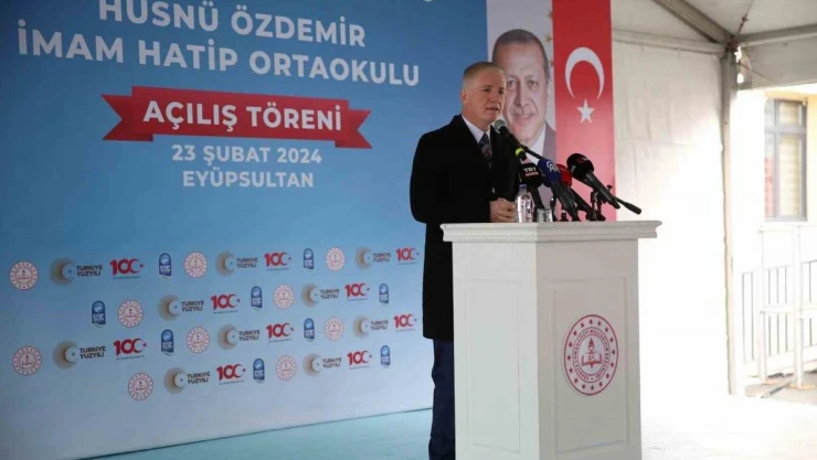 Milli Eğitim Bakanı Yusuf Tekin, Eyüpsultan’da Hüsnü Özdemir İmam Hatip Ortaokulu ve Nişancı Ortaokulu’nun açılış törenine katıldı. Törende konuşan Bakan Yusuf Tekin, “Eğitim ve öğretim yılı açıldığında her çocuğumuzun masasının üzerinde ders kitapları var. Biz yılda öğrencilerimizin masasını üzerine yaklaşık 200 milyon adet kitap bırakıyoruz. Şu an Türkiye’de derslik başına düşen öğrenci sayısı, öğretmen başına düşen öğrenci sayısı itibariyle dünyanın en iyi ülkeleri kategorisindeyiz” dedi.