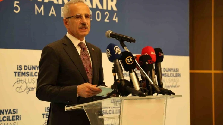 Diyarbakır'da iş adamlarıyla bir araya gelen Ulaştırma ve Altyapı Bakanı Abdulkadir Uraloğlu: 'Cumhurbaşkanımızın liderliğinde geçen son 22 yılda ülkemizin ulaşım ve iletişim altyapısına 275 milyar dolar yatırım gerçekleştirdik' dedi.
