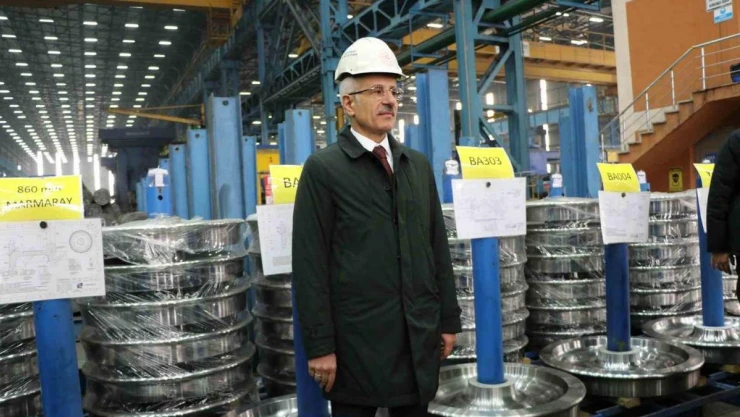 Bakan Uraloğlu, daha sonra başta tiren tekerleği üretimi yapılan haddehaneler olmak üzere bazı tesisleri gezdi. Uraloğlu, KARDEMİR tarafından üretilen tiren tekerleğine imza attı.