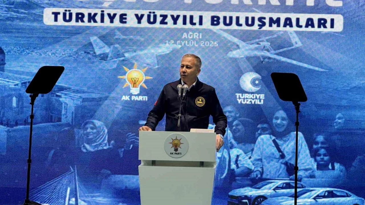 "Bu kabine döneminde düzenlediğimiz operasyonlarla bin 273 organize suç örgütünü çökerttik" ifadelerini kullanan Bakan Yerlikaya, "Bu operasyonlarda 15 bin 433 kişi tutuklandı, 7 bin 453 kişi hakkında adli kontrol hükümleri uygulandı. Ağrı’da ise 14 operasyon düzenlendi, 180 kişi tutuklandı. Aziz kardeşlerim, biz durmayacağız. Zehir tacirlerine, şehir eşkıyalarına ve çocuklarımıza musallat olan suç odaklarına hayatı dar etmeye kararlılıkla devam edeceğiz. Anadolu; Türk’üyle, Kürt’üyle bin yıllık kardeşliğin coğrafyasıdır. Aynı bayrak için şehit olduk, aynı vatan için canımızı ortaya koyduk. Bu kardeşlik bağını kimse bozamaz, bozamayacak. Bugün artık terörsüz bir Türkiye’de huzur, üretim ve teknolojiyle yolumuza devam ediyoruz. Türkiye Yüzyılı, Cumhurbaşkanımızın güçlü liderliği ve milletimizin iradesiyle yalnızca bir hedef değil, gerçeğe dönüşen büyük bir yürüyüştür. Kıymetli dava arkadaşlarım, değerli hemşehrilerim; bugün Türkiye Yüzyılı yolculuğu Ağrı’dan yükseliyor, Anadolu’nun her köşesinde yankılanıyor. Ağrı Dağı gibi dimdik dur, bayrağın gibi hür ol, birliğini ve kardeşliğini asla eksiltme. Biz de buradan bir kez daha söz veriyoruz: Bu toprakların tek bir evladını umutsuzluğa teslim etmeyeceğiz, tek bir sokağını karanlığa bırakmayacağız, tek bir ferdinin başını yere eğdirmeyeceğiz. Unutmayın; biz bu yola çıkarken ’millet’ dedik. Bu yolda yürürken ’adalet ve kalkınma’ dedik. Ufka bakarken ’Türkiye Yüzyılı’ dedik. Rabbim birliğimizi daim, gönüllerimizi mamur, yolumuzu açık eylesin" dedi.