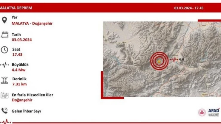 İçişleri Bakanı Ali Yerlikaya, sosyal medya hesabından yaptığı paylaşımda, “Malatya Doğanşehir’de 4.4 büyüklüğünde meydana gelen depremde AFAD ve ilgili kurumlarımızın tüm ekipleri saha taramalarına başlamıştır. An itibari ile olumsuz bir durum yoktur. Gelişmeleri takip ediyoruz. Depremden etkilenen vatandaşlarımıza geçmiş olsun dileklerimi sunuyorum. Allah ülkemizi ve milletimizi afetlerden korusun” ifadelerine yer verdi.