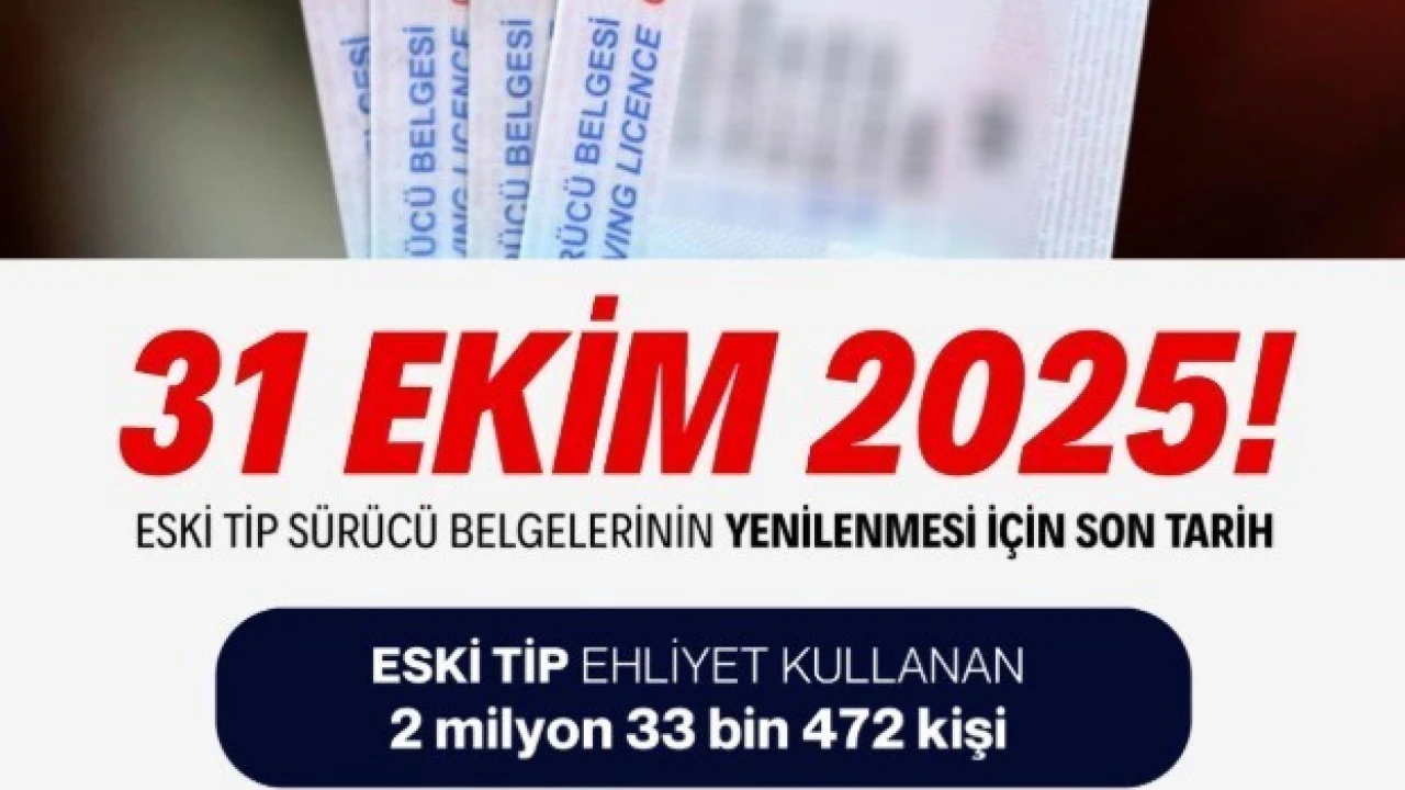 İçişleri Bakanı Ali Yerlikaya, eski tip sürücü belgelerindeki yenileme tarihinin 31 Ekim 2025 olduğunu hatırlatarak, mevcut sürenin uzatılmayacağını bildirdi.