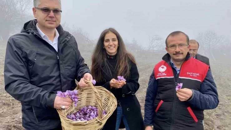 Balıkesir İl Tarım ve Orman Müdürlüğünün destekleriyle Balıkesir'de safran bitkisi üretimi yapan kadın girişimcinin hasadına İl Müdürü Erkan Alkan eşlik etti.