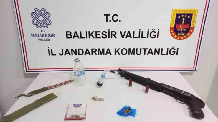 Balıkesir İl Jandarma Komutanlığı ekipleri, uyuşturucu imalatı ve ticaretine yönelik yaptığı istihbarat çalışmaları çerçevesinde, Gönen ve Erdek ilçelerinde eş zamanlı operasyon düzenledi. 31 adet sentetik uyuşturucu hap, 5 gram kubar esrar, 1 gram metamfetamin, 1 adet av tüfeği, 3 adet uyuşturucu kullanma aparatı (payp) ve 1 adet bıçak ele geçirildi.