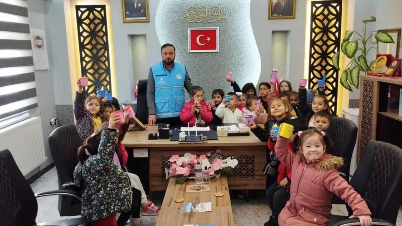 Balıkesir’de Kepsut İlçe Müftülüğüne bağlı İmam-Birliği 4-6 yaş Kur’an kursu öğrencileri, Gazze’deki Filistinli vatandaşlar için harçlıklarını bağışladı.