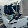 Bariyerlere çarpan tır karşı şeritte devrildi, sürücü ağır yaralandı