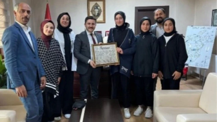 Van'da Özalp Kız Anadolu İmam Hatip Lisesi öğrencileri, Kaymakam Rahmi Bulut'u makamında ziyaret ederek, hazırladıkları projeleri sundular.