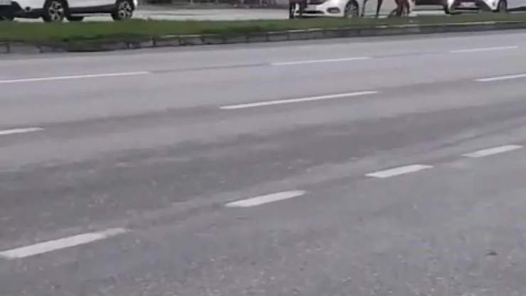 Bursa’da ana yol üzerindeki refüjde kalan başı boş atlar ne yapacağını şaşırdı. Araçların önüne inen atlar, korkunca yine yukarı çıktı.