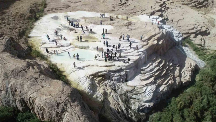 Başkale ilçesine bu yıl atanan öğretmenler, hafta sonu görüntüsü ile Pamukkale’yi andıran travertenleri gezerek fotoğraf çekip takipçileri ile paylaştılar. Tarihi, kültürel ve doğal güzellikleriyle Anadolu’nun önemli bir turizm kenti olmaya aday Van’ın gizli kalmış doğa harikası güzellikleri göz kamaştırıyor. Güvenlik güçlerince gerçekleştirilen başarılı operasyonlar sonucu huzurun sağlandığı bölgede artık bölgede her yıl 30 bini aşkın yerli ve yabancı turistin uğrak mekânı oluyor.