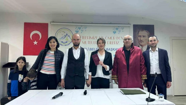 Denizli’nin Çameli ilçesinde 2023 yılının son nikahı kıyıldı. Müzeyyen Paşaoğlu ile Ramazan Akyol çiftinin nikah törenine gerçekleştiren Çameli Belediye Başkanı Cengiz Arslan genç çiftlere mutluluklar diledi. Belediye Başkanı Arslan nikah töreninde, çiftler hayatlarını birleştirecek olan imzalarını atarken, hem dünya evine girecek olmanın mutluluğunu, hem de 2023 yılının son nikahını gerçekleştirmiş olmanın sevincini yaşadı.
