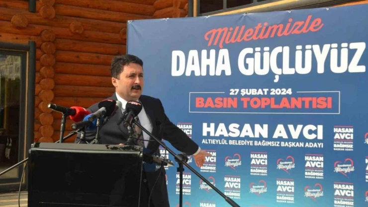 Altıeylül Belediye Başkanı Hasan Avcı 2024 Belediye Başkanlığı seçimlerine bağımsız aday olarak seçimler girme kararı aldı. Altıeylül Asuva Park içinde bulunan Kütük Ev’de basın ve seçmenleri ile bir araya gelerek, bağımsız Belediye Başkanlığını açıkladı. Başkan adayı Avcı belediye başkanlığı döneminde yaptıkları işleri sayarak, yeni dönemde inşaatına başladıkları müstakil hizmet binasını hizmete açacaklarını ve şimdi hizmet verdikleri Gazi Mustafa Kemal Yaşam Kompleksi ve Abdülhamit Han binalarını gençlerin hizmetine vereceklerini açıkladı. Başkan Avcı sözlerinin devamında şu ifadelere yer verdi. "Seçimler bağımsız aday olarak giriyorum ama Altıeylül ittifakı olarak, öyle bir birlik oluşturduk ki Cumhuriyet Halk Partisinden, Ak Parti’den, İyi Parti’den ve bütün partilerden destek var. Seçim çalışmalarımıza destek verecekler. Benim hizmete devam etmem için beni destekleyen vatandaşlarımızla göreve talibim"