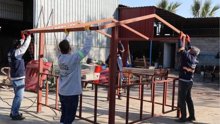 Gerek vatandaşlardan gelen talep ve şikayetler, gerekse sahada yaptıkları incelemeler neticesinde zaman içinde zarar gören veya miladını dolduran bankları, kamelyalar ile çöp kutularını da bulundukları yerlerden alarak müdürlüğe ait fidanlıktaki atölyelerde elden geçiren Akdeniz Belediyesi Park ve Bahçeler Müdürlüğü ekipleri, park ve yeşil alanların ihtiyaç duyduğu her türlü mobilyayı da belediyenin öz kaynakları ile üretiyor.