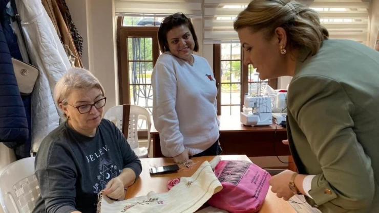 İzmit Belediye Başkanı Fatma Kaplan Hürriyet, gittikleri kurslarda hem sosyalleşen hem de dikim öğrenen kadınlarla bir araya geldi.