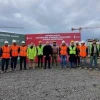Şantiye gezisinin sonunda Başkan İsmet Yıldırım, inşaatın çalışanlarına teşekkür ederek, tatlı ikram etti.