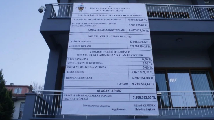 Honaz Belediye Başkanı Yüksel Kepenek, geleneği bozmadı ve 1 yıllık gelir gider bilançosunu yeniden belediye binasına astı. Başkan Yüksel Kepenek, hesap verebilir belediye modeline sahip olduklarını söyleyerek, “Denetleme mekanizmamız daima halka açık” dedi.