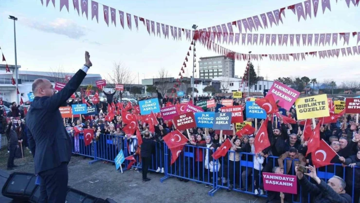 Binlerce aracın toplandığı Sevgi Konvoyu sonrası düzenlenen halk buluşmasında konuşan Tekkeköy Belediye Başkanı Hasan Togar, vatandaşın isteğiyle yarışa devam edeceğini söyledi.