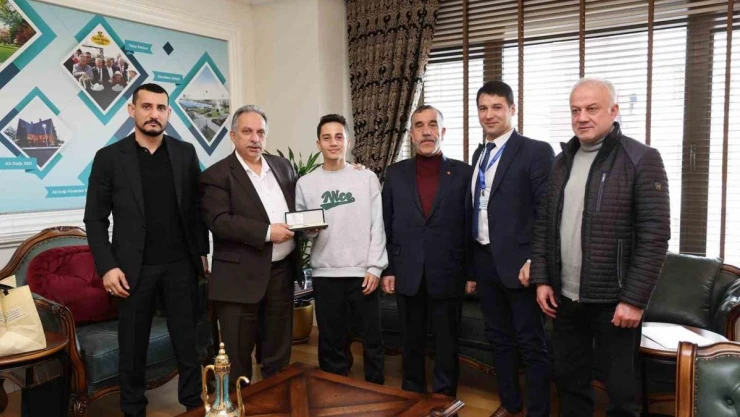 48 kiloda 2. olan Levent Arıkan’ı, babası Şaban Arıkan’ın yanı sıra antrenörleri Mehmet Ateş, Sedat Doğangüneş ve Halil İbrahim Karaca ile birlikte ağırlayan Başkan Yalçın, elde edilen başarıdan gurur duyduklarını söyledi.