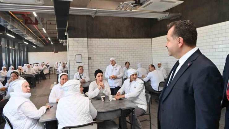 Balıkesir Büyükşehir Belediye Başkanı Yücel Yılmaz ve AK Parti Altıeylül Belediyesi Başkan Adayı Mesut Eray ile birlikte Organize Sanayi Bölgesi’nde çalışan işçileri ziyaret etti. Bir Metal Fabrikası’nda işçilerle öğle yemeği yiyen Başkan Yılmaz ve beraberindeki heyet, Entegre, Otomotiv ve Gıda işçilerini ziyaret etti. Belediye şirketine lezzetli pastalarını ve aperatif yiyeceklerini üreten işçileri teşekkür edip ayakta alkışlayan Başkan Yılmaz, tüm işçileri kahve içmeleri için onur konuğu olarak davet etti. Başkan Yılmaz, ayrıca Balıkesir’e hem istihdam hem de lezzet kattıkları için Gıda şirketine teşekkür etti.