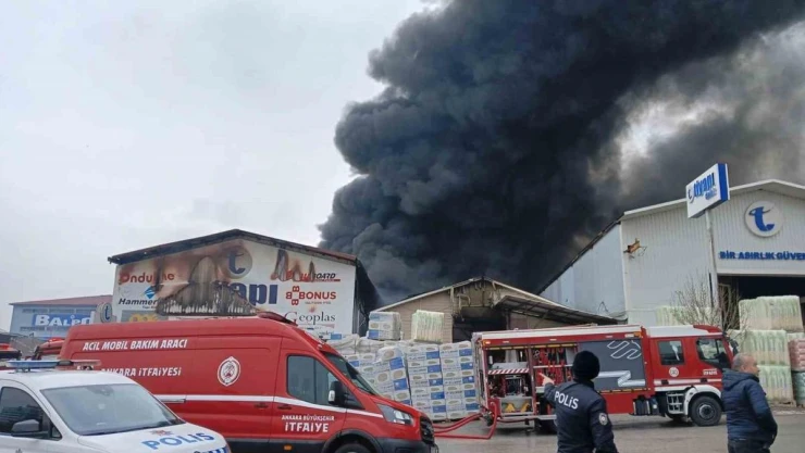 Ankara'da boya ve inşaat malzemelerin bulunduğu depoda çıkan yangın itfaiye ekiplerinin yoğun müdahalesi sonucu kontrol altına alındı.