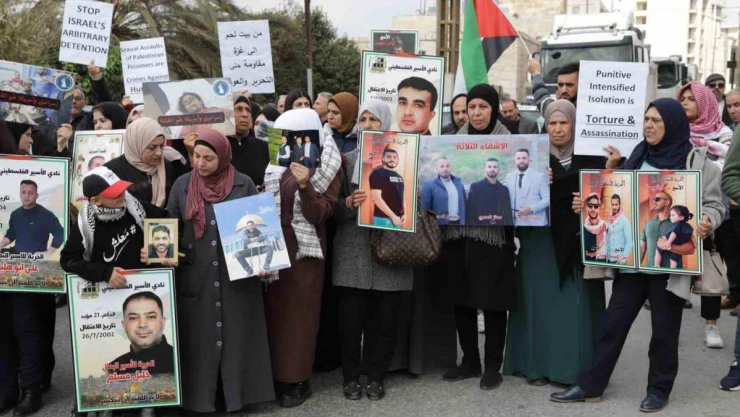 İşgal altındaki Batı Şeria’nın Beytüllahim kentinde Filistinli tutukluların yakınları, destek gösterisi gerçekleştirdi. Tutukluların posterlerini taşıyan göstericiler, İsrail hapishanelerinde tutulan Filistinlilerin serbest bırakılmasını talep etti.