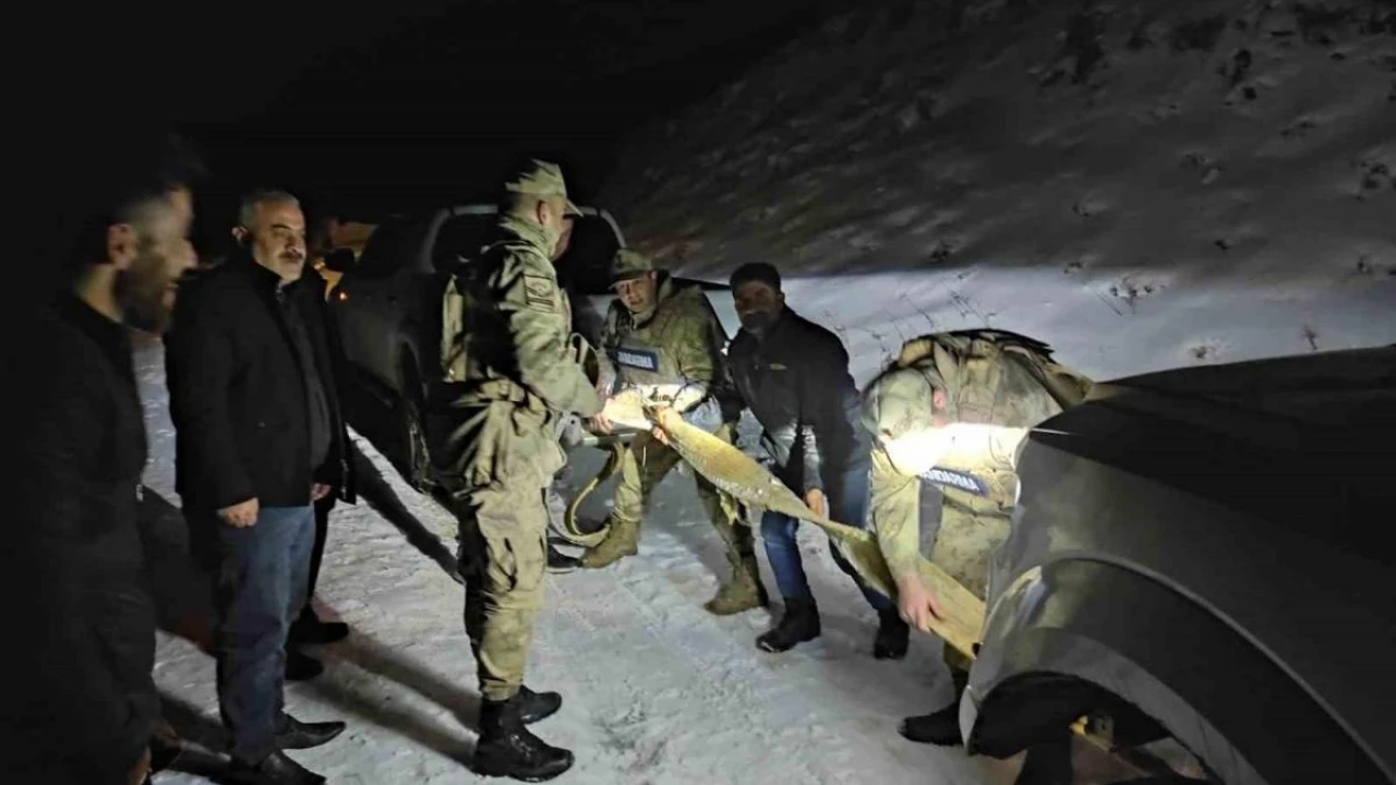 Batman'da araçları kara saplanan vatandaşları jandarma kurtardı