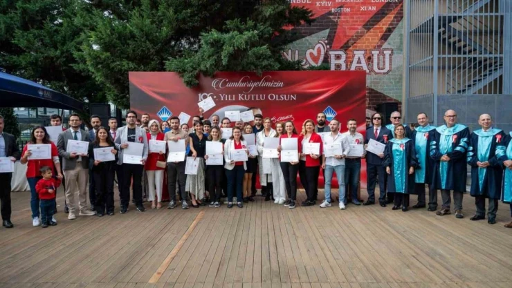 Dünya çapında bir araştırma üniversitesi olma hedefiyle çıktığı yolda çeyrek asrı geride bırakan Bahçeşehir Üniversitesi, okulun tüm paydaşlarını kucaklayan birçok farklı etkinlik ve projeyle Cumhuriyet’in 100. yılını kutluyor. BAU Güney Kampüsü’nde düzenlenen Cumhuriyet Bayramı kutlamasına Bahçeşehir Üniversitesi Rektörü Prof. Dr. Esra Hatipoğlu, fakülte dekanları, akademisyenler ve öğrenciler katıldı. Saygı duruşu ve İstiklal Marşı’nın hep bir ağızdan söylenmesinin ardından BAU Konservatuvar öğrencileri müzik dinletisi sundu. Etkinlikte Cumhuriyetin 100. Yılı 100 Doktora Bursu Projesi ile geleceğe ışık tutacak bilim adamları yetiştirme hedefiyle 100 doktora öğrencisine kabul ve burs belgeleri takdim edildi.