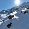 Yüksek ve kayalık alanları kendilerine mekân tutan dağ keçileri dağlara renk katıyor. Sürüler halinde görüntülenen dağ keçileri, karlar üzerinde bir süre gezinip gözden kayboldu.
